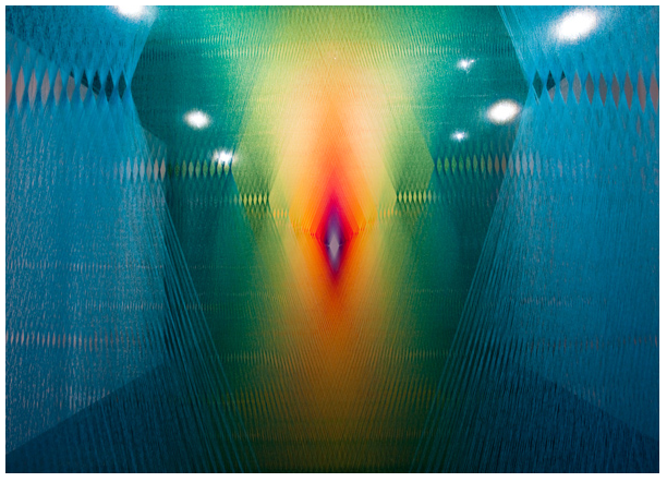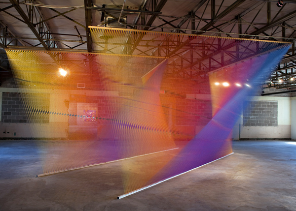 Un caso de arte espectacular es la obra de Gabriel Dawe, un diseñador gráfico de México que ha llevado a cabo varias instalaciones en la con la luz y la perspectiva crea figuras alucinantes. El estilo de estas obras mezclan un estilo abstracto con el op-art y es fruto de una investigación que el diseñador hizo con los bordados e hilos. Tecnología y artesanía se mezclan en espacios gigantescos donde hilos de colores están colocados de forma estratégica en soportes como bastidores de madera.