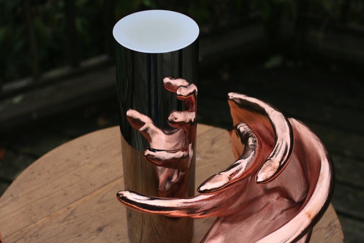 Este artista de Johannesburgo que reside en Londres, realizó varias piezas que en un principio parecían esculturas abstractas, sin una forma establecida pero que si se les ubica un cilindro de metal bien pulido, forman una figura en el reflejo. Y es en dicho cilindro donde se observar el significado de la obra de arte y donde todo adquiere una explicación.