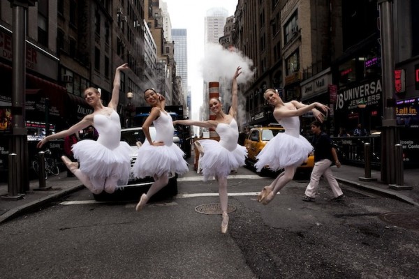 Esta artista de la fotografía ha querido plasmar a varios bailarines con diferentes vestimentas, en las calles de París, Tokio y Nueva York. Lo que más sorprende de estas imágenes es por un lado, lo bien que combinan líneas horizontales (vistas en las piernas de la bailarina) con la verticalidad (y ea veces diagonal) del escenario. Y por otro lado, el cromatismo de algunas fotos y los personajes que salen acompañando a las bailarinas.