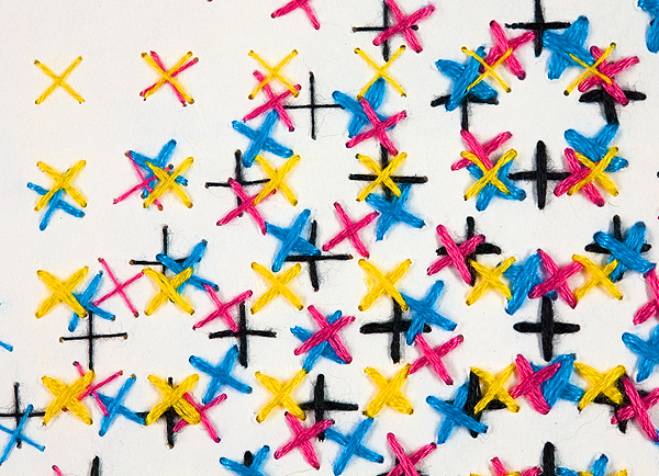 El diseñador gráfico, en este caso, asume el rol de máquina, donde su brazo mecánico es su mano y su precisión. Y todo ello, dejando puntos en una especie de patrón con las tintas CMYK, para crear imágenes en color.