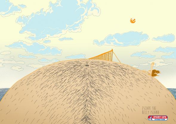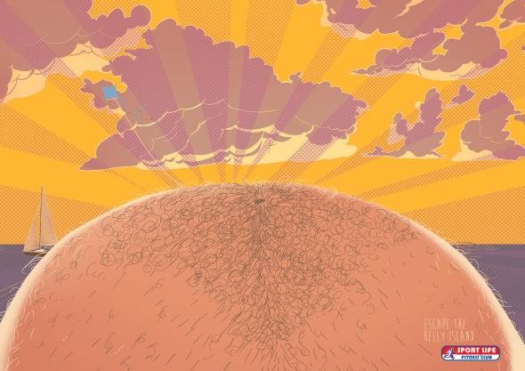 Un caso es esta serie de gráficas del Sport Life Fitness Club, donde la barriga es la protagonista, pasando de ser una parte del cuerpo, a una isla. Pero basta ya de palabras, con la imagen y el texto: «Evita la ‘isla del vientre'(Escape the Belly Island)» , lo entenderéis todo.