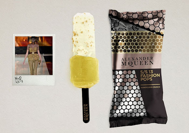 Pero, ¿cómo sería un helado creado exclusivamente para amantes de la moda y fashionistas? Esta pregunta tiene una posible respuesta, si observaros el proyecto conceptual de una diseñadora de Dubai, Lara Atkinson. Esta diseñadora se ha inspirado en las colección de primavera y verano para crear las «Fashion Pops» o «Polos de moda», helados hechos con sabores diferentes, colores y cómo no, un packaging basado en los trabajos de los diseñadores más punteros. Algunos ejemplos con Alexander McQueen, KENZO o Louis Vuitton.