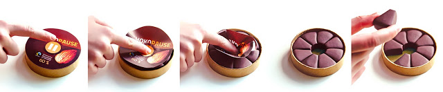 Este packaging ha sido diseñado por Jürgen Novotny del estudio Vivia. Y como bien dicen desde este estudio: «Un dedo es suficiente para alcanzar el gran sabor del chocolate con un simple movimiento.» Pulsando el botón de «pause» se puede acceder fácilmente a los chocolates, gracias al mecanismo del packaging. Así se podrá disfrutar del gran placer de disfrutar de un pequeño descanso, sea acompañado o en solitario.