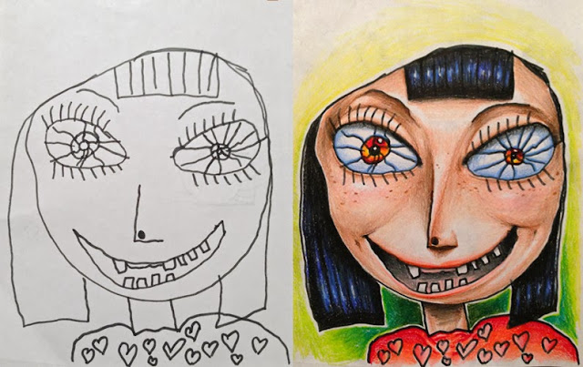 Cuando éramos pequeños, por lo menos a Inventia así le pasaba, nos daba mucho por dibujar, y sobre todo, por regalar dibujos a toda la familia, compañeros, la maestra del colegio, etc. Es una de las formas con las que un niño o una niña puede expresar su afecto y demostrar su talento al mismo tiempo. Hay veces, que por unas cosas u otras, regalábamos los dibujos inacabados, o en lápiz, porque nos gustaba más y punto. Pero…¿qué pasaría si nuestro trabajo lo terminara otra persona?