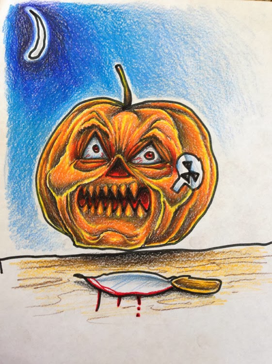 Cada dibujo tiene una historia: los gallos fueron dibujados por los niños para entregárselos como regalo de cumpleaños a la madre, para que ésta pudiera decorar la cocina, o la calabaza que vemos en el dibujo anterior es un dibujo de uno de los hijos del padre, que también quiso entrar en esta actividad de «colorear».