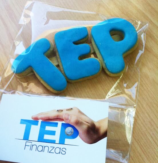 | El alumno Jaume Albors realizó su discurso y para generar recuerdo, incluyó un obsequio para cada miembro del tribunal: unas galletas creativas con el nombre y logotipo del proyecto. |