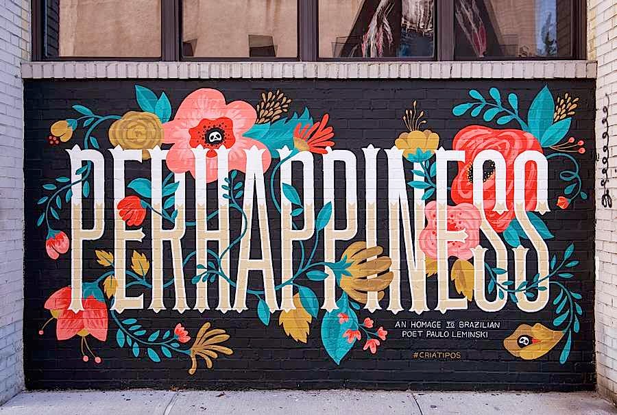 Aun así, nos encontramos proyectos cuya idea es sencilla, pero que sin una ejecución que sea impecable no sería una buena idea. Un ejemplo es el proyecto que han llevado a cabo Cristina y Cyla, dos artistas de Brazil que han tenido la oportunidad de pintar Perhappiness, un mural de arte preciosísimo en Bushwick, Brooklyn.
